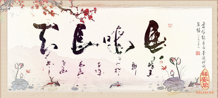 众鱼戏水图:一幅会了多条鲤鱼嬉戏的图画,寓意年年有余、万事如意。鱼于五行属水,夏秋出生者均五行欠水,特别适合挂众鱼图。
