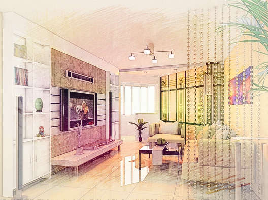 电视柜不可太长,短了倒是没关系,电视柜短了两边显的空空的,又没办法摆放其他物品否则影响美观,这时可以用高大的阔叶植物如橡皮树、发财树、棕竹等植物来填补空间,这对招财纳气很有帮助。客厅电视背景墙无论设计简单还是复杂都要做的高点,即主题墙要做的高,高至客厅吊顶处。风水学上认为高者为山,低者为水,有山有水自然是好风水,客厅中高的背景墙是山,低的沙发是水,因此背景墙应该做高。有的业主觉得客厅很宽敞想隔出部分来做房间,这样背景墙就没法做了,有水没山不是好风水。如今的商品房户型客厅电视背景墙与沙发背景墙都是正对的,如果不是正对,电视背景墙务必不要和开着窗户或开窗的墙正对,高山对着窗外与好风水相悖。