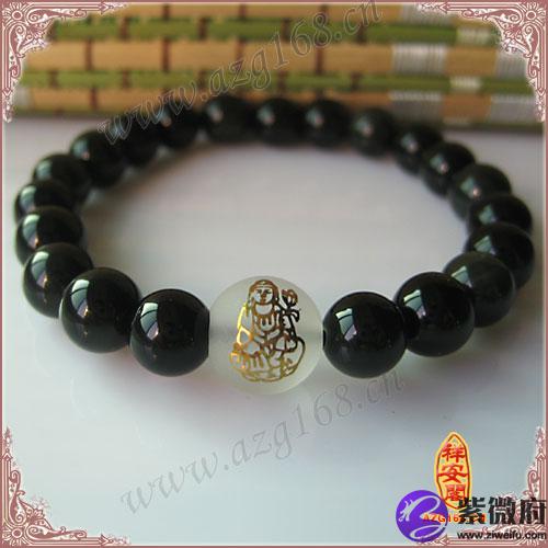 属蛇本命佛手链8MM‘天然黑曜石普贤菩萨手链’