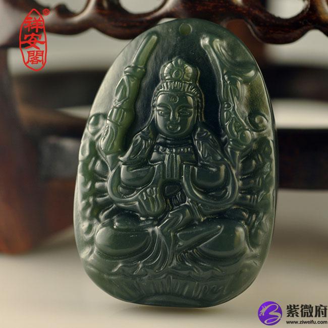 千手观音菩萨玉佩选用上等和田玉料雕刻而成(具有收藏和增值价值)。