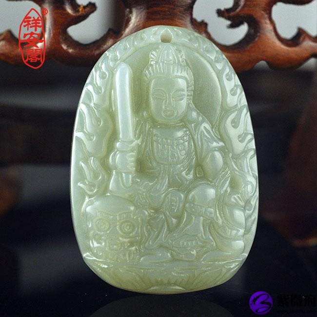 文殊菩萨本命佛选用上等和田玉料雕刻而成(具有收藏和增值价值)。