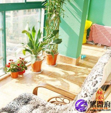 二、阳台布置许清新爽朗:阳台的装修不必过分张扬,清爽素洁为好,要保持整洁,不可堆放杂物。阳台侧墙面、地面可以做一些装饰美化,放一些清新宜人的有韵味的装饰品,也可以在阳台种植花草,营造园林小空间,为家居增添自然景致。但如果是阳台紧靠厨房的话,便可以利用阳台阳台的一角建筑一个储物柜,存放一些蔬菜食品或不经常使用的物品。供休息、餐饮使用的阳台,也可以摆放少量的折叠家具。