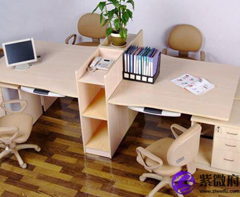 可以选择有利于自己风水的办公桌款式,如靠近自己的三方直线条办公桌,最外面那条变呈半圆形;整张呈圆弧的,这种办公桌对面不要有同事,否则将给同事带来不吉。