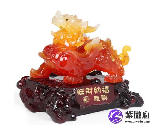 貔貅:招财进宝。此瑞兽身无鳞,脚无毛,神态威武,为上佳风水摆设,但只适合于偏财或推销行业(推销员)选用,凡收入浮动者皆有神效。摆放时只需头向门或向窗外,有利偏财,正财欠奉,除非加上龙神座一对则可接受。