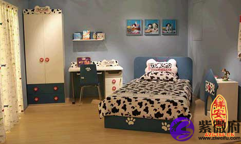 儿童房内部的颜色对小孩的心太也有很重要的影响,首先,色泽要淡雅,不可用太过激烈的大红大紫色,避免刺激小孩,也忌用黑色及纯白色,若用淡蓝色为底,再点缀一些草绿、明黄、粉红的色泽则能取得比较好的效果。