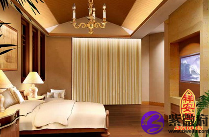3.卧室天花板应平坦,以乳白色为佳(暗色为凶);天花板可装饰纵横木条,但不可悬吊各种奇怪饰物。