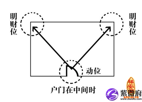 如果住宅门开中央时,财位就在左右对角线顶端上。