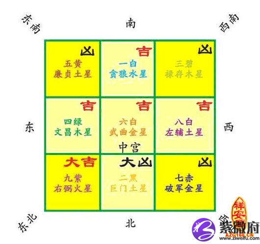 吉方; 正北 八白星 西南方 九紫星正东一白星
