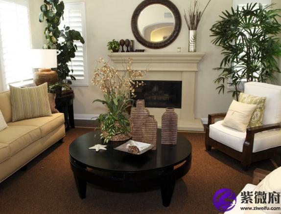 5、装修色彩的运用和材质的选择,以符合居住者命理五行所喜最佳:石材类五行为土;实木、竹制品类五行属木;合成材质五行属火;玻璃、水晶材质五行属水;金属材质五行属金。主色的运用根据主人八字所喜,可按房屋坐向来搭配。东向客厅宜使用米黄色为主色调,因东方五行属木,土是木之财,黄色是土的代表色,故黄色能生旺主人财运。南向客厅以白色为主色调,南为离火,依据五行生克理论,金为火财,金的代表色为白色,因此白色能消减火之灼炽,亦能使居家财运旺盛。西向的客厅以绿蓝为主色调,或加于淡蓝的色彩,或种植较为茂盛的树木,或采用木质家具,因木为金之财,而绿色则是木的代表色,西向住宅阳光照射强烈,栽种植物能弥补此方面的缺点,亦能助旺主人财运、官运和学业运。北向客厅以淡红、微红为主色调,北方五行属水,南方火则是水之财,而红色是火的代表色,北向客厅配以红色,正如《易经》既济卦,可谓功德圆满,亨通顺利,有水火既济之功,利于居住者的财运和异性缘。