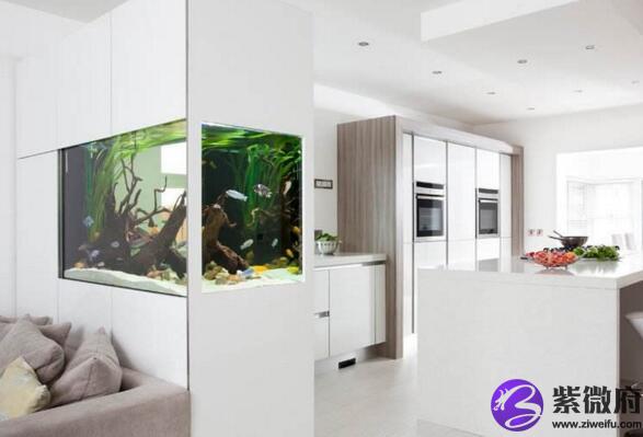 鱼缸切勿摆在沙发背后:从风水角度来看,以水来做背后的靠山是不妥当的,因为水性无常,倚之作为靠山,便难求稳定。因此把鱼缸摆在沙发背后,一家大小日常坐在那里,便会无山可靠,影响宅运的安定。而若是把鱼缸放在沙发旁边,则对住宅风水并无妨碍。