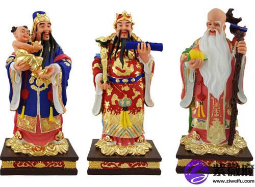并不是说福禄寿三星神像只能够摆放在家中的客厅,如果家里有神龛的话那么书房、办公室内也是可以作为摆放的空间。一般来说家中不提供房屋内都有着不同的风水位,从中挑选合适的摆放三星神像即可,并不需要有太多的顾虑。
