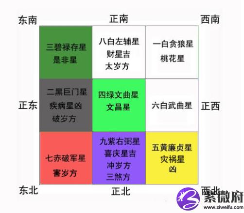 2016年丙申猴年,九紫右弼火星飞临到正东方震宫,今年正东方位是九紫星,属于未来旺气,五行属火,是喜庆之神,这颗星专管婚姻喜庆、财富、嫁娶、求子、桃花、置业等吉事。此位适宜开门、置业、安床、办公等,这样可以促进个人运势,如果正确使用九紫飞星,此方位风水布局适当,或家中大门或房门正在此吉星飞临方位,会有利家运兴旺,如能将主人命理与屋宅风水调整相结合,则会有如添丁、升职、获得财富、爱情、创业成功等喜事临门,使男女聪慧、富贵平安。