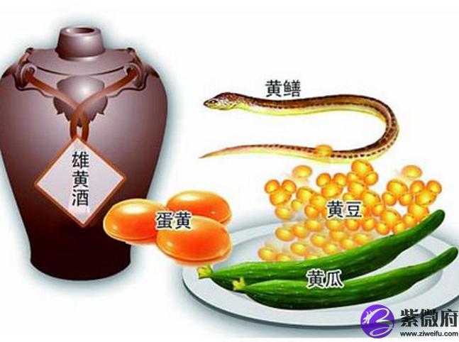 所谓五黄就是指的黄鳝、黄鱼、黄瓜、咸鸭蛋及雄黄酒。而五黄煞源自于玄空九星风水学,九星指一白水,二黑土,三碧木,四绿木,五黄土,六白金,七赤金,八白土,九紫火。每年在洛书九宫格中分布循环,并根据星位的不同,来判断每个方位的吉凶,故称为玄空飞星风水。