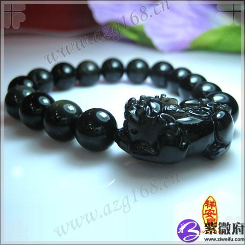 开光天然冰种黑曜石貔貅手链★招财神兽 男款★