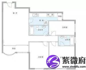 另外,图片中这个户型,还犯有三个问题:穿堂煞、主卧室的床很可能被卫生间冲到、以及次卧大门正对卫生间门。