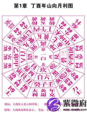 下面这张图就是2017鸡年的山向月利图,如果你能看懂,当然你就明白了最赚钱的月份和方位。