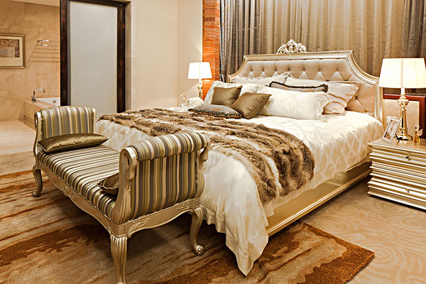 喜用神为金的,适宜选择铜质地床,床垫或床单选用黄色系或淡白色系。