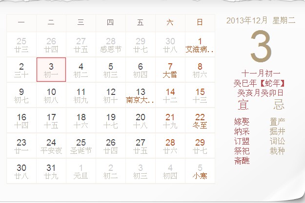 公历: 公元2013年12月03日