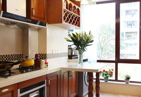 色相偏暖的色彩,使厨房空气氛显厨房空间气氛显得活拨,热情,可增强食欲。一般暖色系的厨房对财运也都会有帮助,且很有利旺盛厨房的气场,厨房禁忌出现红色、黑色等不利的风水,破坏健康。