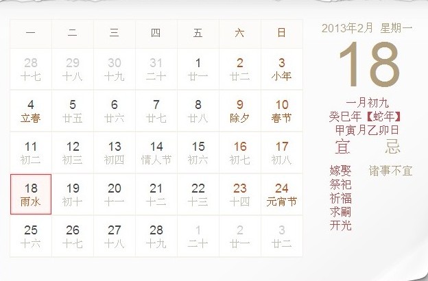 2013年2月18日吉时