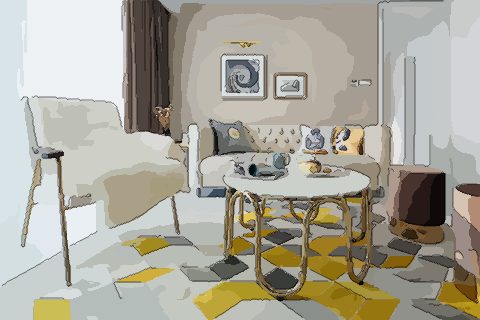 众所周知,厅室对角线是财位,所以若是在这块区域有柱子、凹位、窗户的话,建议选用一些植物或酒柜作为分隔物,以防止财气外泄,另外这种布局也能调整出一个好的财位,两全其美。