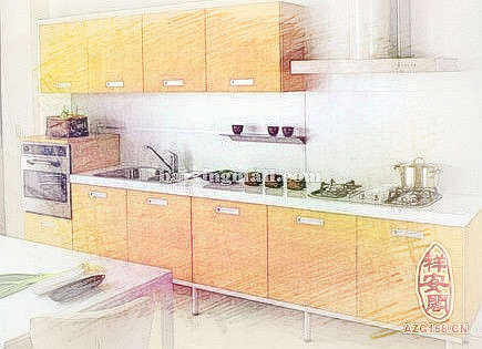 1、家庭厨房因受居住空间的限制普遍偏小,所以厨房环境产生的视觉心理很重要。厨房在五行中属火,根据五行相生的原理,橱柜台面应该选择五行火或者是木的颜色。一般来说,浅淡而明亮的色彩,使狭小的厨房显得宽敞;纯度低的色彩,使厨房温馨,亲切,和谐;色相偏暖的色彩,使厨房空气氛显厨房空间气氛显得活拨,热情,可增强食欲。